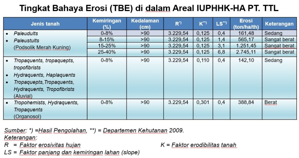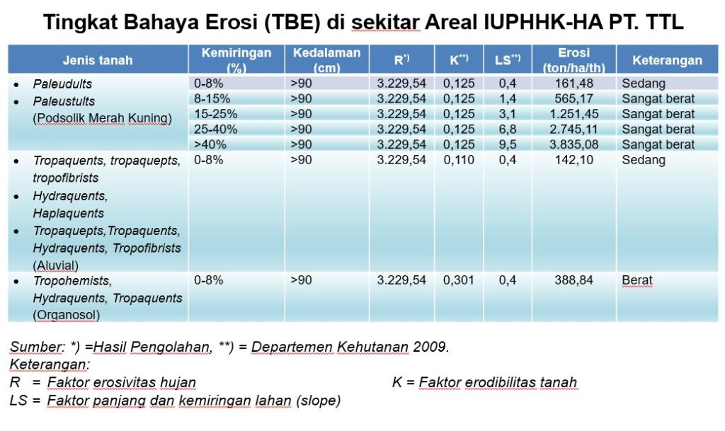 Di areal IUPHHK-HA PT. TTL ditemukan areal TBE berat – sangat berat dan wilayah KHG :